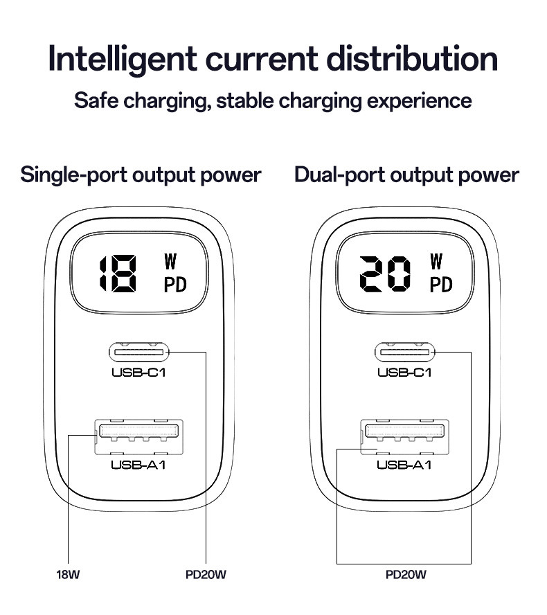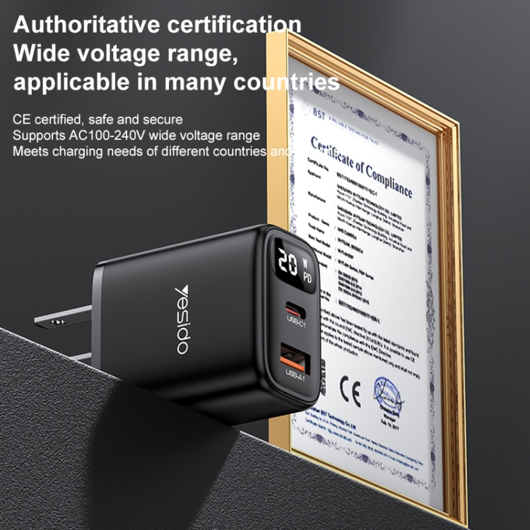 Chargeur mural à charge rapide Yesido YC12U US 20W avec affichage de la puissance