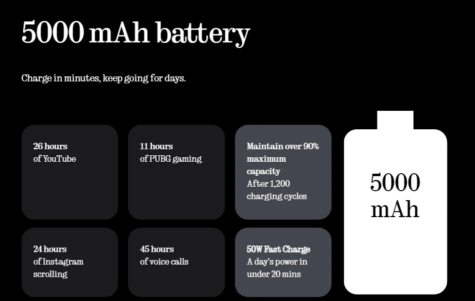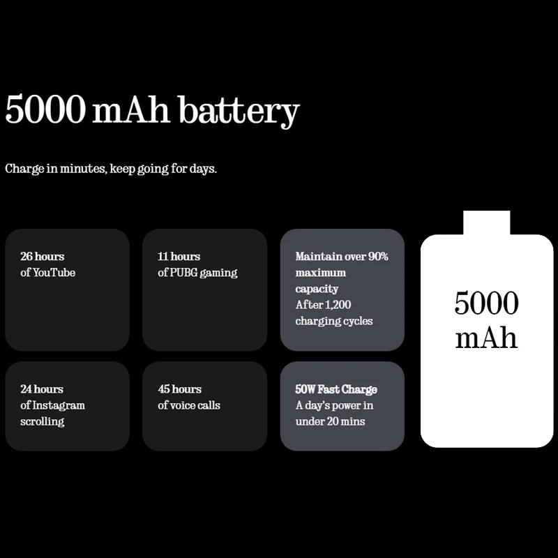 Batterie de 5000 mAh, charge rapide de 50 W