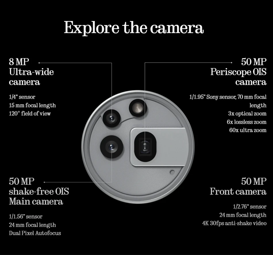 50 Mpx arrière + 50 Mpx avant + 8 Mpx ultra grand-angle