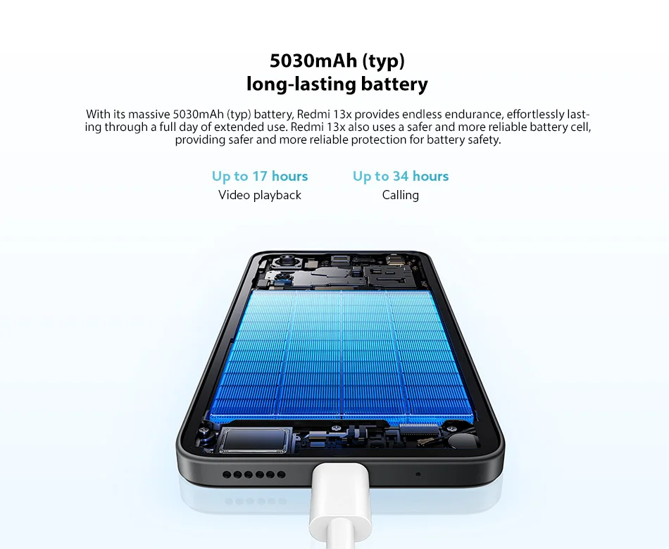 La puissance ne vous ralentira pas. La charge rapide de 33 W garantit que votre Redmi 13x est prĂŞt Ă l’emploi dès que vous l’ĂŞtes. De plus, lorsque la batterie est faible et que l’Ă©cran est en veille, la charge s’accĂ©lère jusqu’Ă 20 %, vous permettant de reprendre l’activitĂ© encore plus vite.