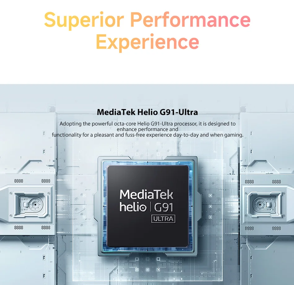 Faites passer vos selfies au niveau supĂ©rieur avec la camĂ©ra frontale amĂ©liorĂ©e de 13 MP, associĂ©e Ă un anneau de lumière douce intelligent qui assure un Ă©clairage parfaitement Ă©quilibrĂ©, mĂŞme dans l’obscuritĂ©.