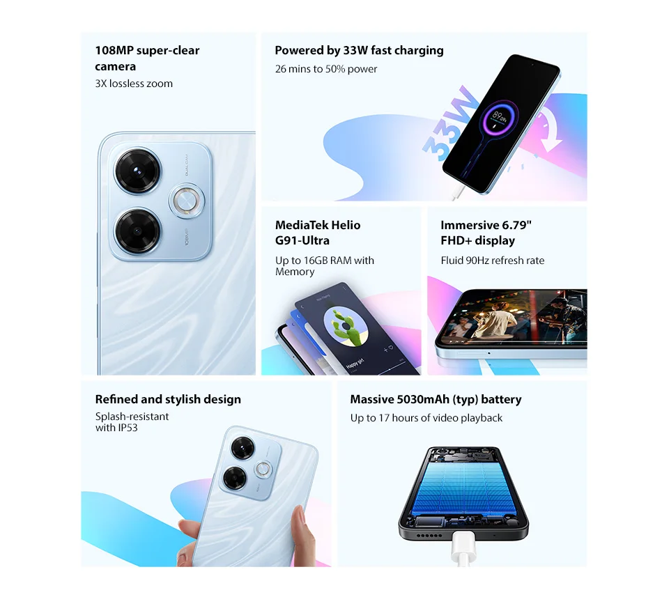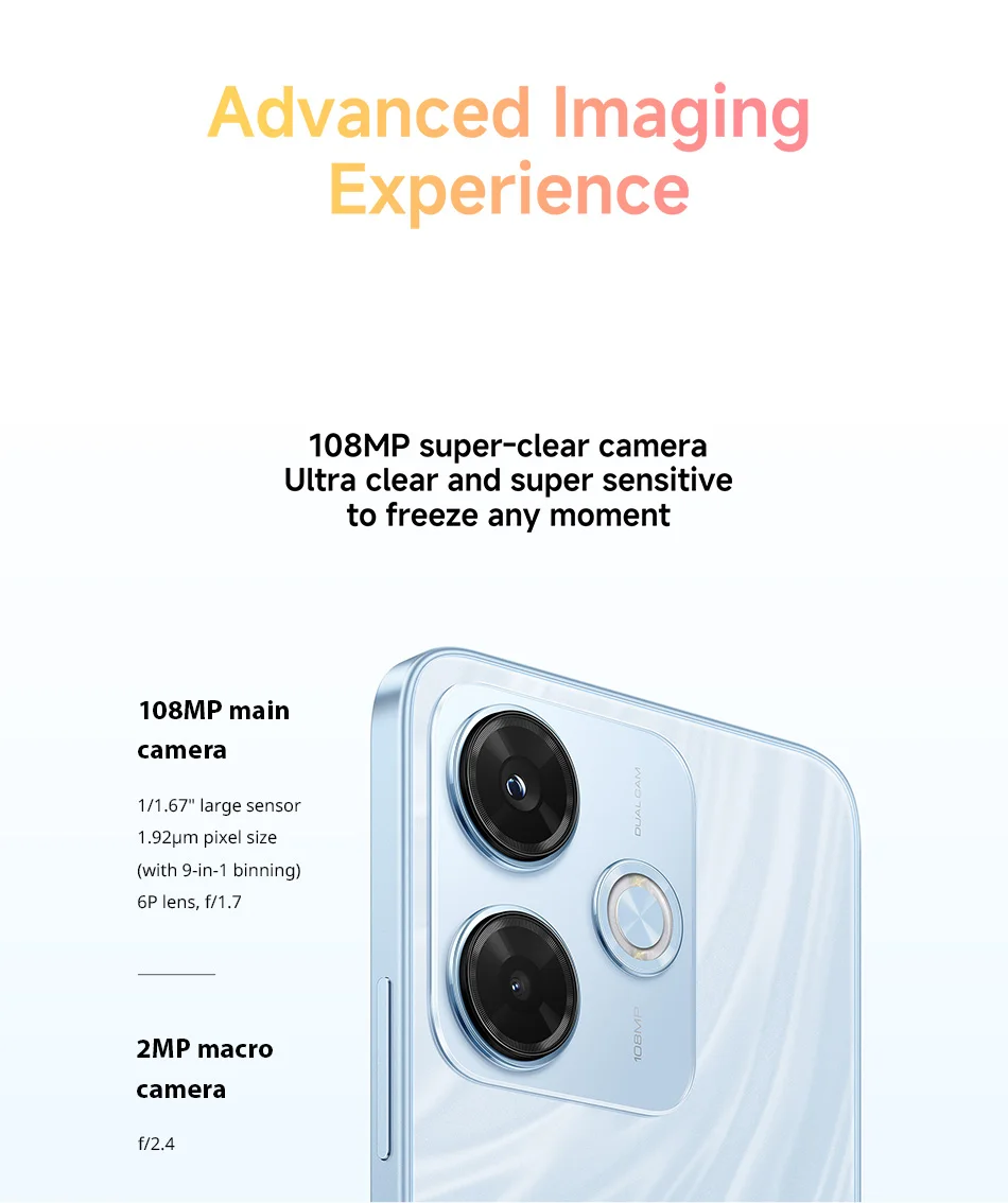 Redmi 13x – Appareil photo ultra-clair de 108 Mpx. Ultra-détaillé, à tout moment.